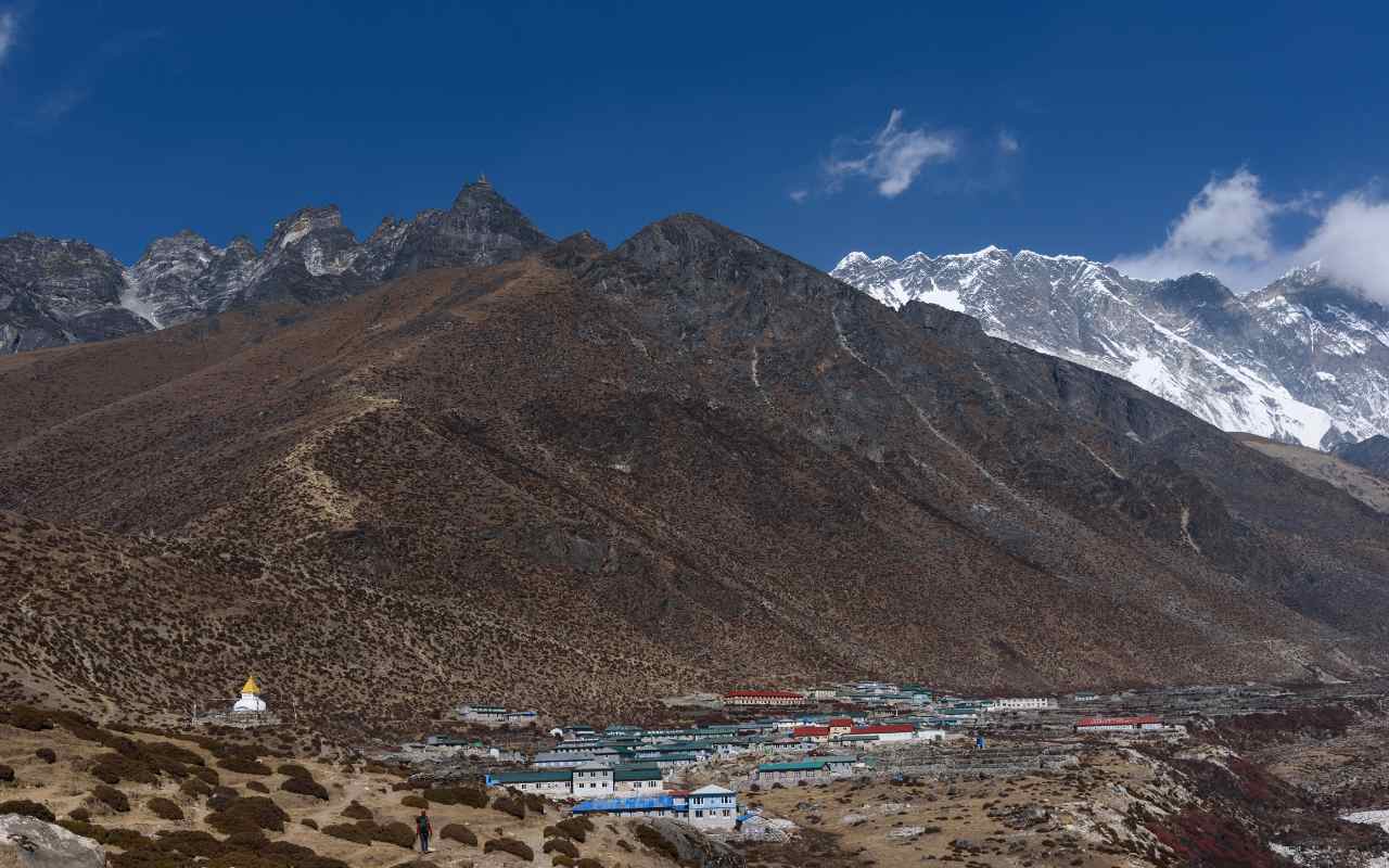 Next, you’ll walk to Dingboche, passing through Deboche and Pangboche. At 4,340 meters, Dingboche is one of the highest villages in the region. You’ll spend another acclimatization day here and hike up to Nangkartshang Hill for amazing views of Makalu, Cho Oyu, Lhotse, and Ama Dablam.