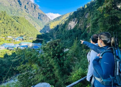 After breakfast, we start walking along the Dudh Koshi River, crossing several hanging bridges, including the famous Hillary Suspension Bridge. The trail passes through small Sherpa villages such as Tok Tok, Benkar, and Monjo, with beautiful views of waterfalls and green hills.