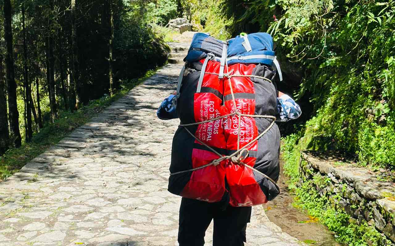 A porter typically carries up to 16-18 kg of luggage for two trekkers combined. Each includes 8-9 kg during the trek.
