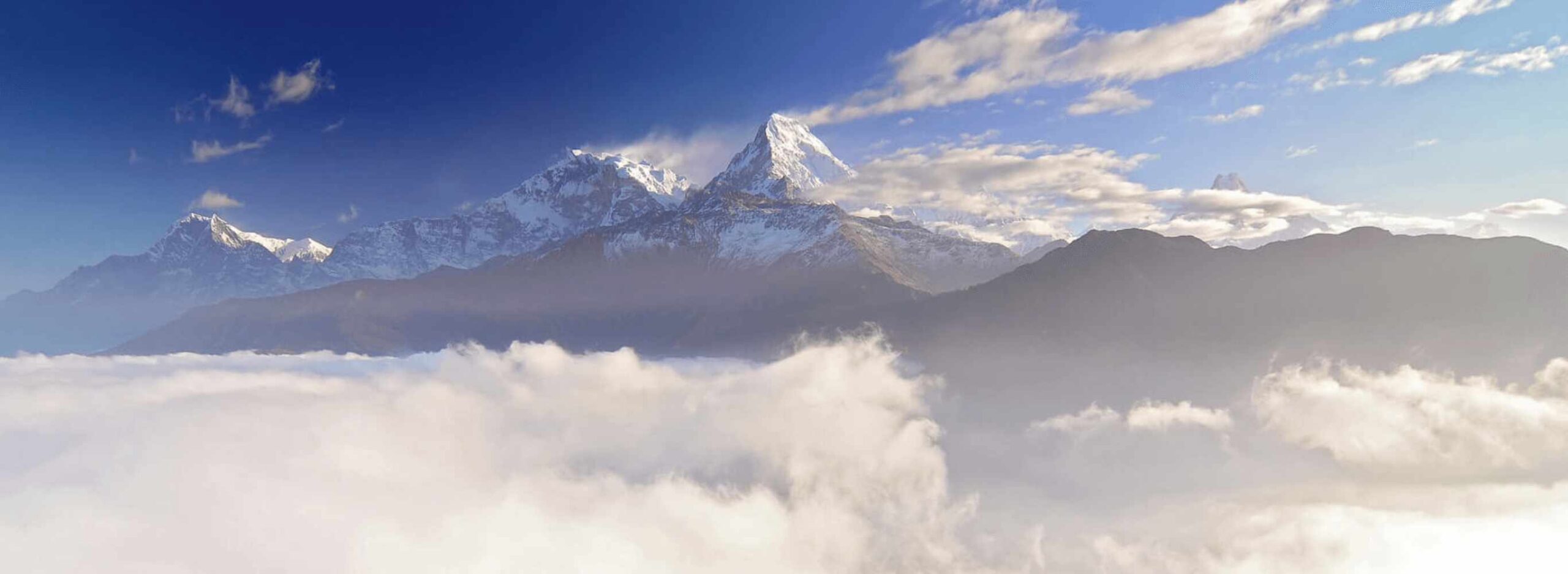 Spectacular panoramic views of the Annapurna mountain range, including Annapurna I, Dhaulagiri, Machhapuchhre, and other towering peaks