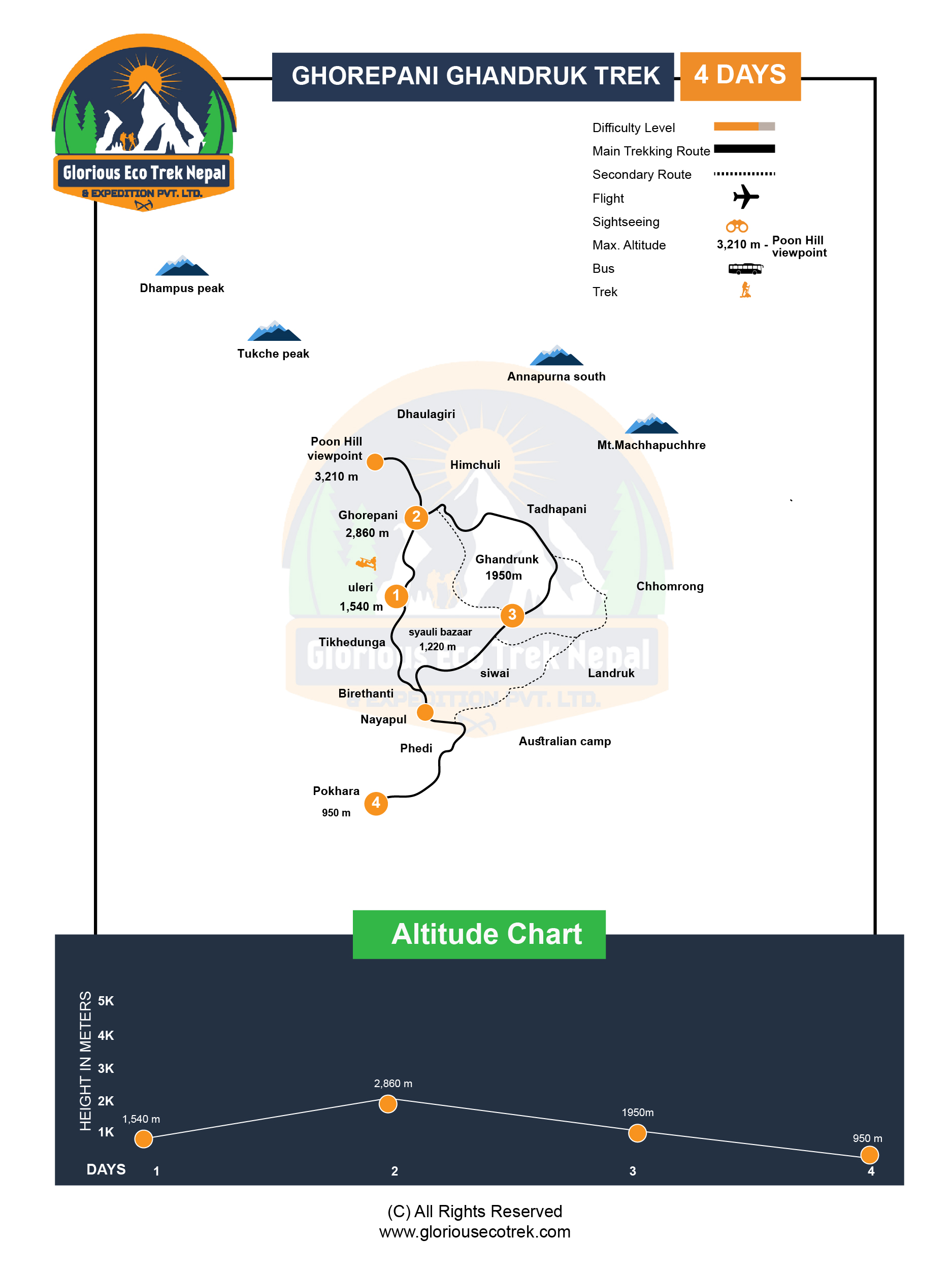 Itinerary Overview of Ghorepani Ghandruk Circuit Trek – 8 Days