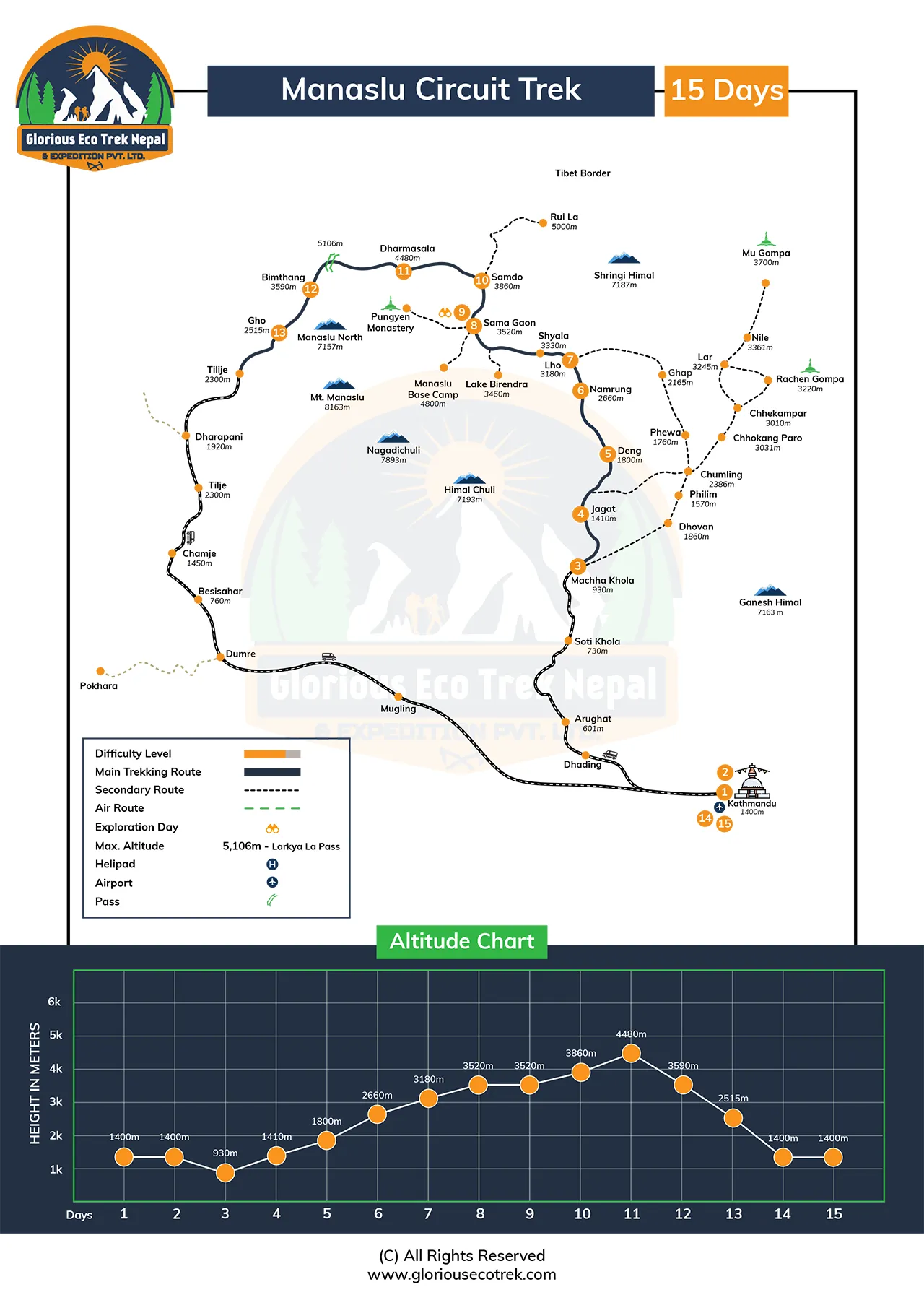 The Manaslu Circuit Trek with Glorious Eco Trek Nepal is a breathtaking adventure in the remote and lesstraveled northern Himalayan region of Nepal. This 15-day journey offers an unforgettable experience filled with dramatic landscapes, rich culture, and stunning mountain views all far away from the busy tourist trails.